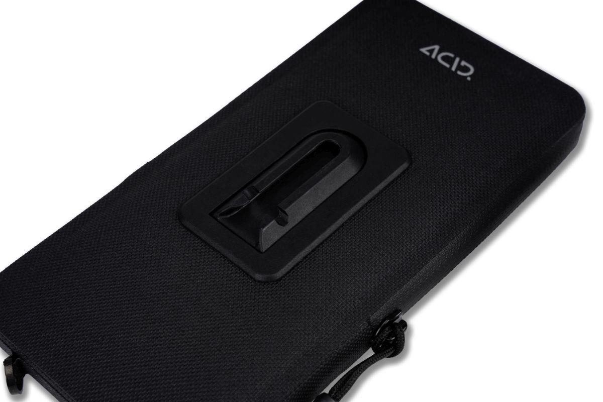 Die verschweißte ACID Handytasche PRO M mit wasserdichtem Reißverschluss bietet beste Performance bei strömenden Regen. Die Größe M passt für Smartphones mit maximal 150 x 70 x 10 mm (LxBxH). Aufgrund der Touchscreen-Folie ist es möglich das Handy in der Hülle zu bedienen. Praktisch: der abnehmbare Schultertragegurt und das Innenfach für Bankkarten. Reflektierende Elemente erhöhen die Sichtbarkeit.