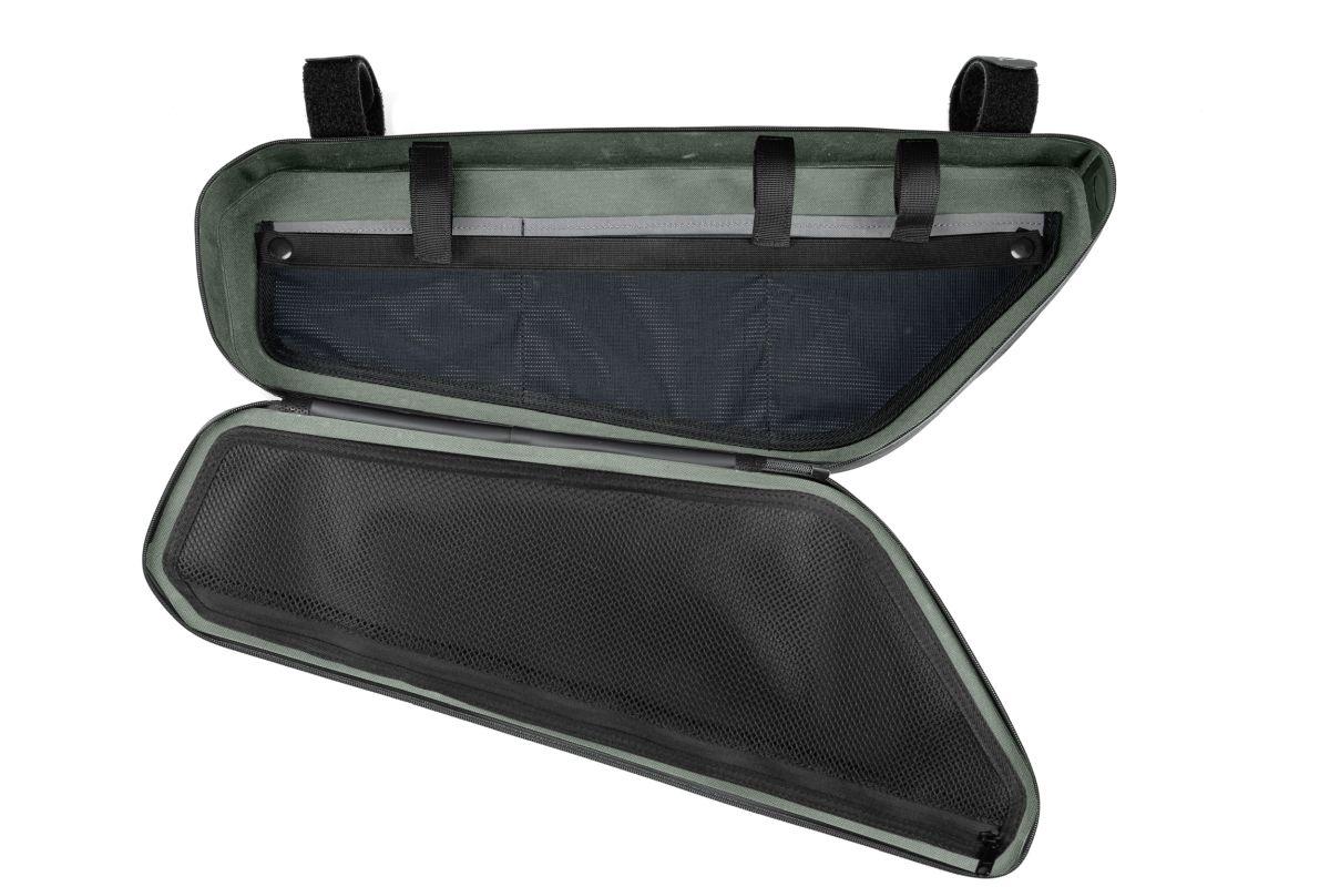 verschweißte Konstruktion, wasserdicht, abriebfestes Außenmaterial, PVC-frei, flexible Anbringung durch umlaufendes MOLLE-System, reflektierende Elemente auf beiden Seiten, Seitenfach, vielfältige Anbringungsmöglichkeiten für diverse Objekte im Inneren, farbig abgesetzte Fächer im Inneren der Tasche, selbsterklärend, intuitive Nutzung durch eine abgestimmte Konstruktion, passend für verschiedene Rahmentypen