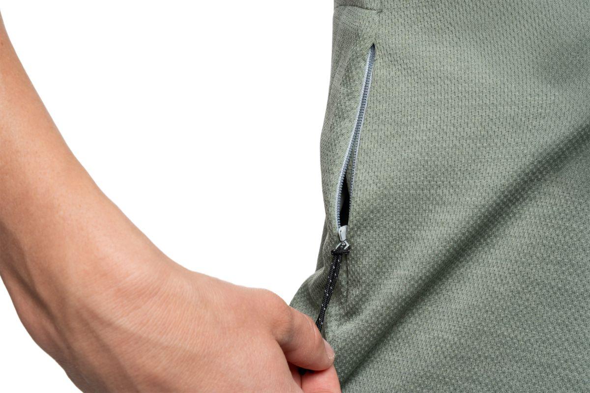 Regular Fit, nahtlos aufgesetzte Reißverschlusstasche hinten, atmungsaktives, schnelltrocknendes Funktionsmaterial, geruchshemmende Austrüstung, Silikonband am Innensaum, Model ist 168 cm groß, Model trägt Größe S