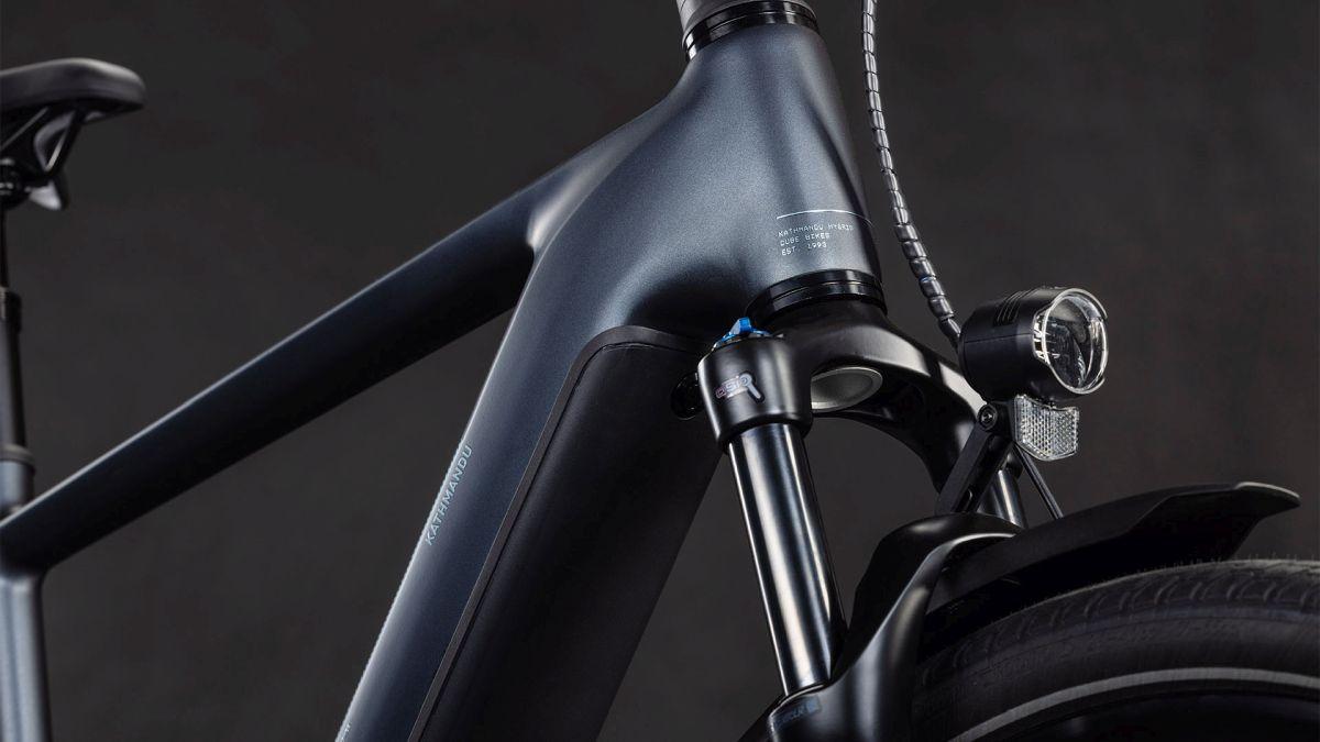 Der Rahmen des CUBE Kathmandu Hybrid sieht auf den ersten Blick vielleicht unspektakulär aus – auf den zweiten erschließen sich jedoch seine Eleganz und Klasse, außerdem die vielen Innovationen und cleveren Details. Dabei ist der samt 800 Wh PowerTube Akku ästhetisch und sauber ins Design integrierte CX Motor von Bosch nur eins der Highlights. Ein weiteres ist unsere Efficient Comfort Geometry, die harmonisch mit der 100 mm Federgabel Hand in Hand arbeitet, was die Kontrolle vor allem bei schwierigen Bedingungen optimiert. Dazu die interne Zugverlegung, die den cleanen Look des Chassis unterstreicht. Was noch? Ein vielseitiges, beinahe unzerstörbares UDH für einfache Ersatzteilverfügbarkeit, ein integrierter Kettenschutz und unser stabiler, robuster, überaus formschöner integrierter Gepäckträger IC 3.0, auf dem alles Platz findet, was auf Abenteuertour mit muss.
