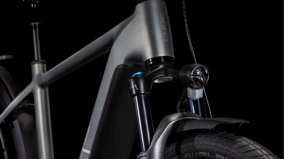 Der Rahmen des CUBE Kathmandu Hybrid sieht auf den ersten Blick vielleicht unspektakulär aus – der zweite enthüllt seine Eleganz, seine Klasse und die vielen Innovationen und cleveren Details. Der samt 800 Wh PowerTube Akku ästhetisch und sauber ins Design integrierte CX Motor von Bosch ist dabei nur der Anfang. Unsere Efficient Comfort Geometry arbeitet harmonisch mit der 100 mm Federgabel Hand in Hand, was die Kontrolle vor allem unter schwierigen Bedingungen optimiert. Dazu die interne Zugverlegung, die der cleanen Optik des Chassis in die Karten spielt und den Wartungsaufwand maßgeblich reduziert. Was noch? Ein vielseitiges, beinahe unzerstörbares UDH für einfache Ersatzteilverfügbarkeit, ein integrierter Kettenschutz und unser stabiler, robuster, überaus formschöner integrierter Gepräckträger IC 3.0, auf dem alles Platz findet, was auf Abenteuertour mit muss.