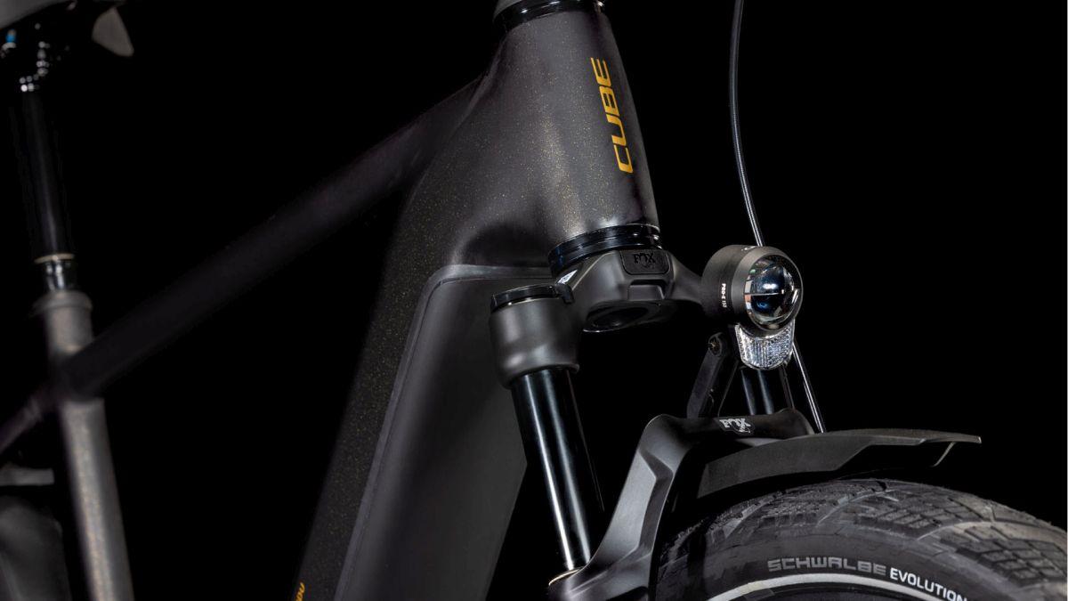 Der Rahmen des CUBE Kathmandu Hybrid sieht auf den ersten Blick vielleicht unspektakulär aus – der zweite enthüllt seine Eleganz, seine Klasse und die vielen Innovationen und cleveren Details. Der samt 800 Wh PowerTube Akku ästhetisch und sauber ins Design integrierte CX Motor von Bosch ist dabei nur der Anfang. Unsere Efficient Comfort Geometry arbeitet harmonisch mit der 100 mm Federgabel Hand in Hand, was die Kontrolle vor allem unter schwierigen Bedingungen optimiert. Dazu die interne Zugverlegung, die der cleanen Optik des Chassis in die Karten spielt und den Wartungsaufwand maßgeblich reduziert. Was noch? Ein vielseitiges, beinahe unzerstörbares UDH für einfache Ersatzteilverfügbarkeit, ein integrierter Kettenschutz und unser stabiler, robuster, überaus formschöner integrierter Gepräckträger IC 3.0, auf dem alles Platz findet, was auf Abenteuertour mit muss.