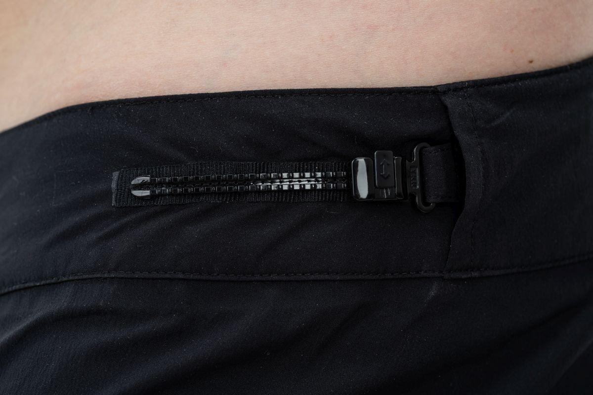 widerstandsfähiges Funktionsmaterial, zwei Taschen mit Reißverschluss, verstellbarer Bund mit Ratsche, Model ist 186 cm groß, Model trägt Größe L