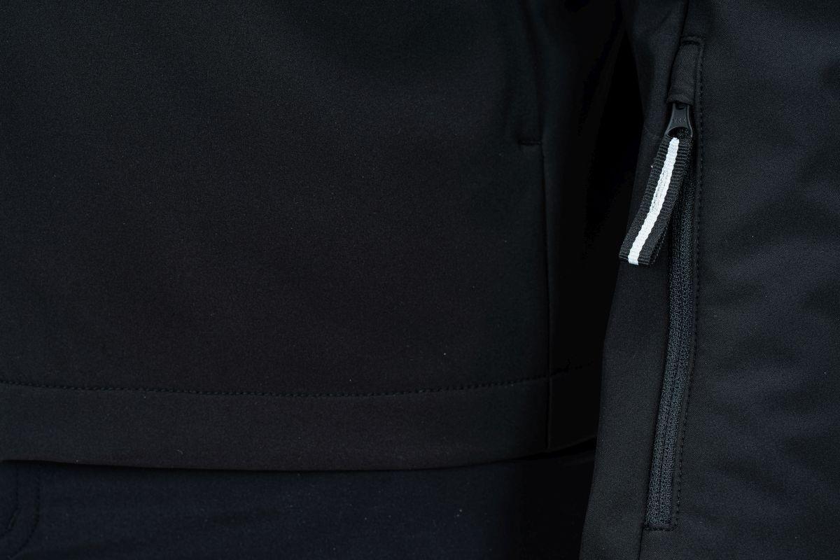 atmungsaktives, wasserabweisendes Außenmaterial, angerautes Innenmaterial, Raglanschnitt mit vorgeformten Ärmel, durchgehender Frontreißverschluss, Reißverschlusstasche am Ärmel, zwei Eingriffstaschen vorne, reflektierende Elemente