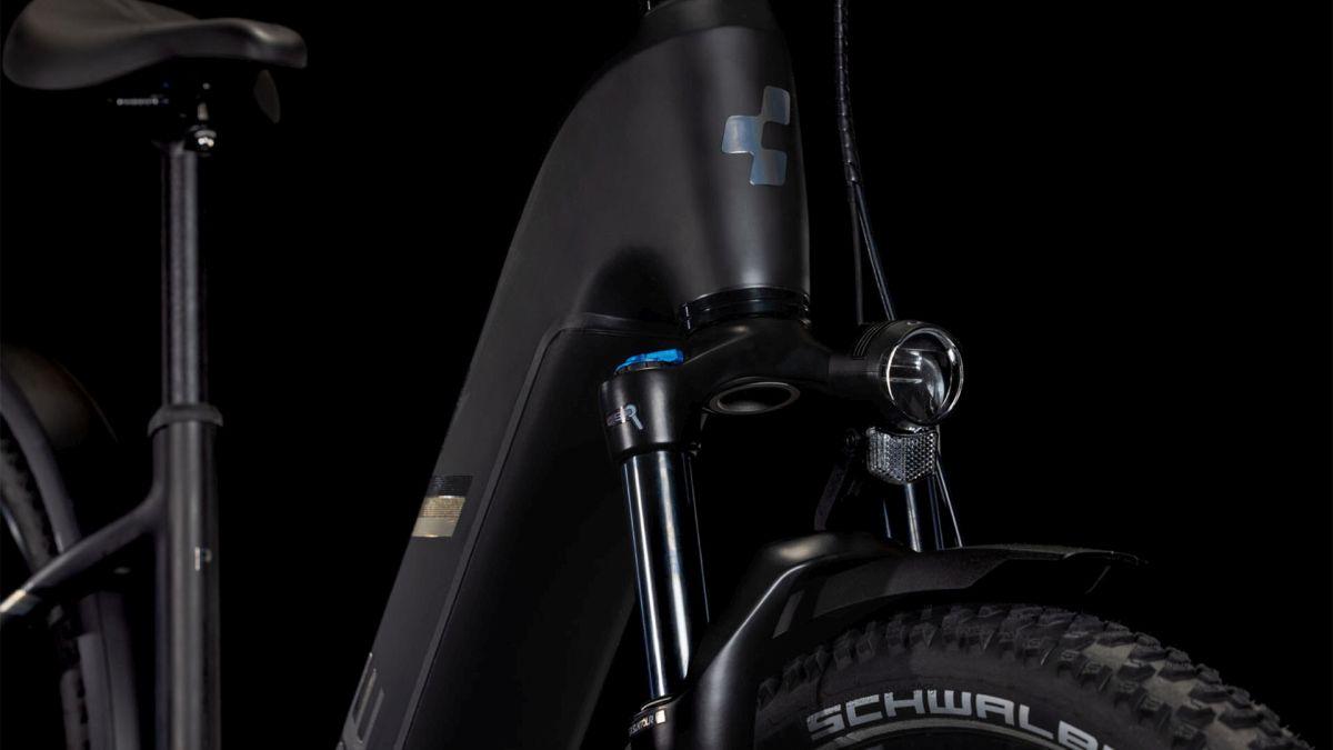 Der Tiefeinsteiger-Rahmen des Nuride Hybrid hält, was sein Name verspricht – einfaches, unkompliziertes Auf- und Absteigen sind damit garantiert. Doch da ist noch mehr: Neben einer Federgabel mit 100 mm Federweg für ein Plus an Fahrkomfort und Kontrolle haben wir das Chassis mit großzügiger Reifenfreiheit (sogar inklusive der mitgelieferten Schutzbleche) ausgestattet. Im Inneren verlaufende Züge unterstreichen die cleane Optik des Rahmens und verursachen kaum Wartungsaufwand. Ebenso harmonisch ins Design integriert sind der Bosch CX Antrieb und der 800 Wh starke PowerTube Akku. Außerdem gibt's einen Kettenschutz sowie ein UDH für einfachere Ersatzteilverfügbarkeit. Was noch? Serienmäßig verbaute Schutzbleche, Lichter und ein Seitenständer. Da kann das nächste Touren-Abenteuer kommen!