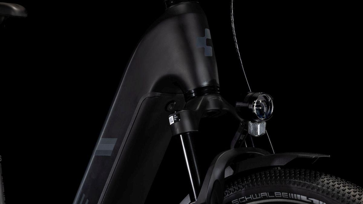 Der Tiefeinsteiger-Rahmen des Nuride Hybrid hält, was sein Name verspricht – einfaches, unkompliziertes Auf- und Absteigen sind damit garantiert. Doch da ist noch mehr: Neben einer Federgabel mit 100 mm Federweg für ein Plus an Fahrkomfort und Kontrolle haben wir das Chassis mit großzügiger Reifenfreiheit (sogar inklusive der mitgelieferten Schutzbleche) ausgestattet. Im Inneren verlaufende Züge unterstreichen die cleane Optik des Rahmens und verursachen kaum Wartungsaufwand. Ebenso harmonisch ins Design integriert sind der Bosch CX Antrieb und der 800 Wh starke PowerTube Akku. Außerdem gibt's einen Kettenschutz sowie ein UDH für einfachere Ersatzteilverfügbarkeit. Was noch? Serienmäßig verbaute Schutzbleche, Lichter und ein Seitenständer. Da kann das nächste Touren-Abenteuer kommen!