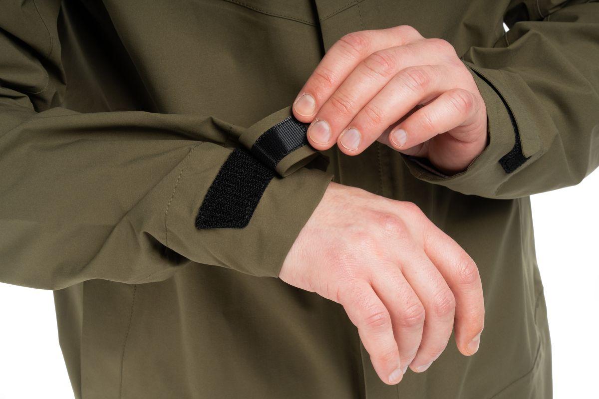 Regular fit, wasserdichtes, atmungsaktives Material mit TPU Membran und 10.000mm (JIS-L-1092 B:2009) Wassersäule, Nähte vollständig versiegelt, Helmkompatible Kapuze, Seitentaschen mit Reißverschluss, 2-Wege Reißverschluss vorne: Weitenregulierbarer Saum, Klettverstellung am Ärmelsaum, Model ist 185cm groß und trägt Größe M