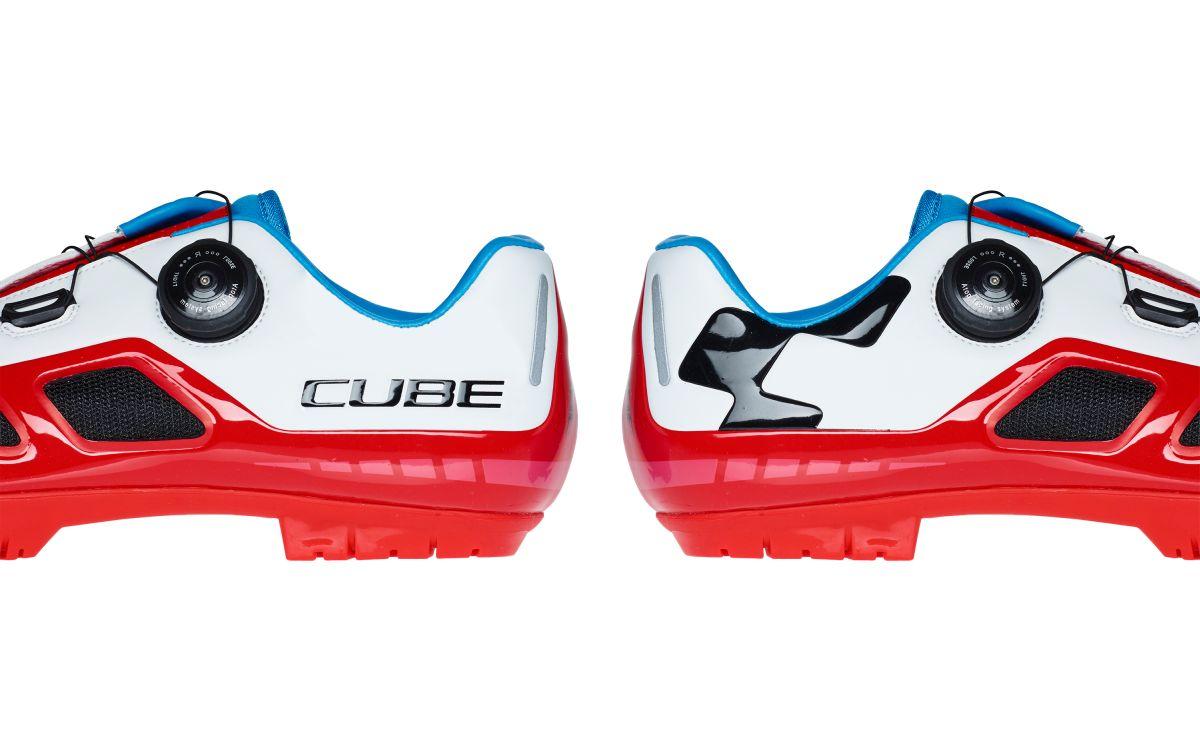 Der CUBE SYDRIX Schuh vereint hervorragende Belüftung mit sicherem Verschluss und bietet Rennradfahrern sowohl Komfort als auch effiziente Kraftübertragung. Die Glasfasersohle mit Belüftungskanälen und austauschbarem Fersenstollen garantiert, dass jede Watt Leistung direkt auf die Pedale übertragen wird, während die verstärkte Fersenkappe Stabilität und Halt verbessert. Der Disc-Verschluss ist schnell und einfach zu bedienen und verteilt in Kombination mit einem asymmetrischen Design den Druck gleichmäßig für optimalen Komfort und Passform. Die verstärkte Zehenbox bietet zusätzlichen Schutz in diesem empfindlichen Bereich. Das perforierte Obermaterial und die NF Ergonomics-Innensohle sorgen für gute Belüftung, Polsterung und Druckverteilung, was den ganzen Tag über Fahrkomfort gewährleistet.