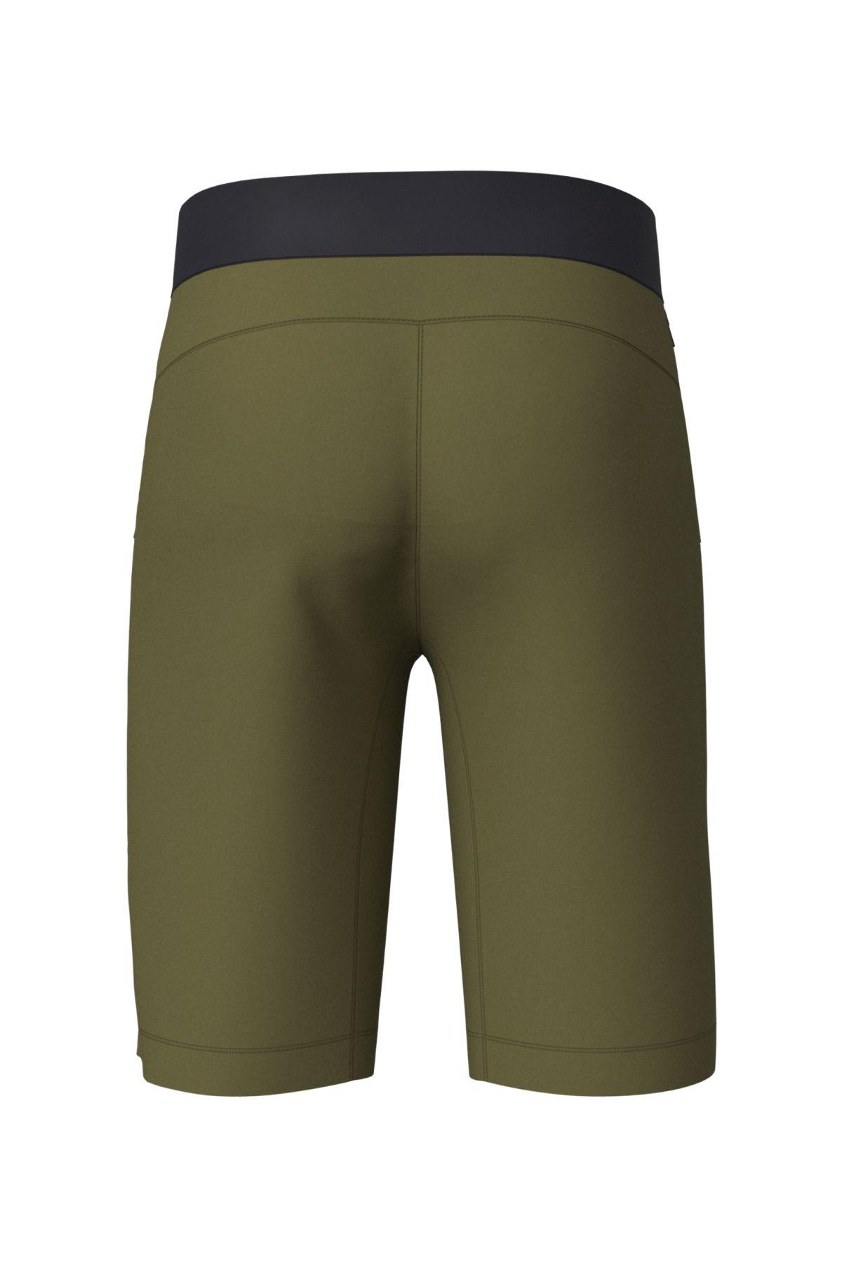 leichtes, robustes Material, zwei Taschen mit Reißverschluss, Bund mit elastischem Einsatz, Model ist 185 cm groß, Model trägt Größe M