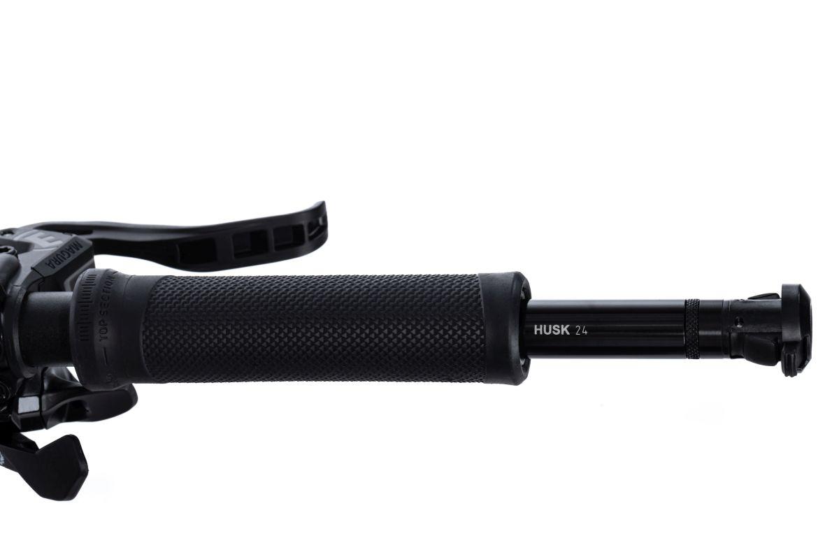 Mit der ACID Lenkerhalterung für das Multitool HUSK lassen sich die Metall-Tubes des HUSK sicher und unsichtbar im Lenker versenken. Lenkerendstopfen entfernen, HUSK in die Lenkerhalterung schrauben und in den Lenker schieben. Dadurch werden die Gummis der Lenkerhalterung gequetscht und klemmt sich im Lenker fest.
