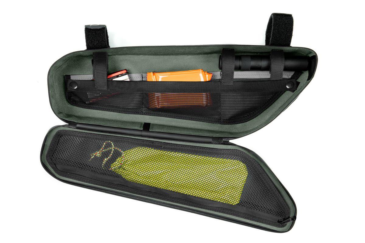 verschweißte Konstruktion, wasserdicht, abriebfestes Außenmaterial, PVC-frei, flexible Anbringung durch umlaufendes MOLLE-System, reflektierende Elemente auf beiden Seiten, Seitenfach, vielfältige Anbringungsmöglichkeiten für diverse Objekte im Inneren, farbig abgesetzte Fächer im Inneren der Tasche, selbsterklärend, intuitive Nutzung durch eine abgestimmte Konstruktion, passend für verschiedene Rahmentypen