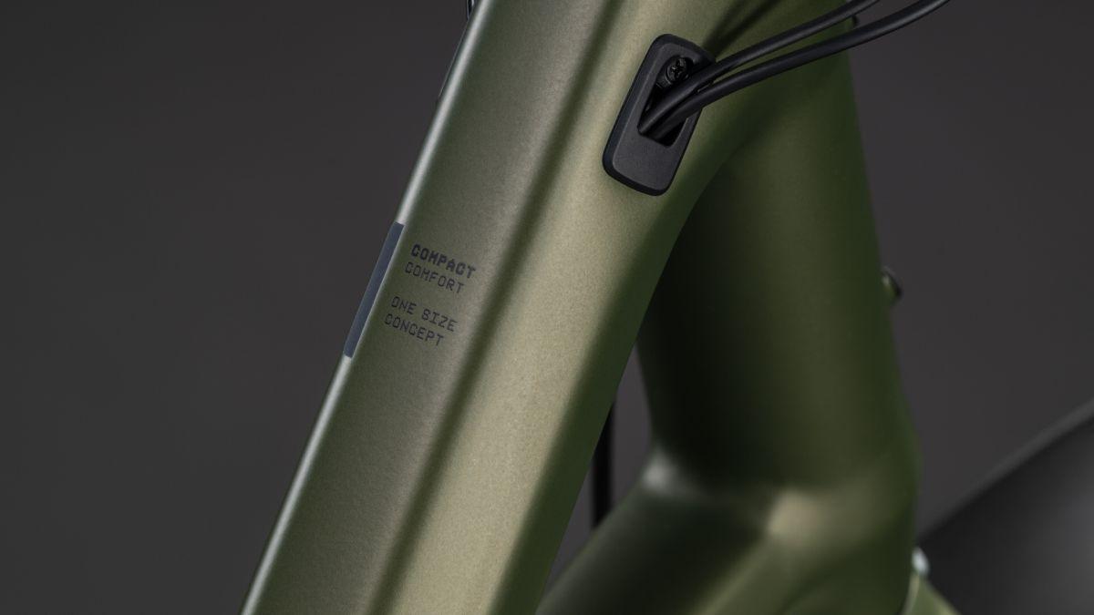 Die einfachste Lösung ist doch oft die beste! Deshalb haben wir unserem Compact Hybrid Rahmen auch ein stabiles Unterrohr mit praktischem Tragegriff gegeben – elegant im Look, macht es das Auf- und Absteigen superkomfortabel. Dazu ermöglicht das lange Steuerrohr sicheres und präzises Lenken. Für kraftvollen Vortrieb ist der geschmeidig arbeitende Bosch Performance Motor verantwortlich, der formschön ins Unterrohr integriert wurde – dabei ist der 545 Wh starke Akku hinter dem Sitzrohr weder beim Pedalieren noch beim Beladen im Weg. Das Smart System von Bosch liefert essenzielle Informationen, die per eBike Flow App auch vom Smartphone aus abrufbar sind. Praktisch: Weil sich Sattel- und Lenkerhöhe schnell und einfach verstellen lassen, kann das Bike individuell an die jeweilige Körpergröße angepasst werden. Wer mehr mitnehmen möchte, montiert den optionalen Front-Gepäckträger. E voilà, hier kommt der coole Allrounder zum Pendeln, Shoppen, Campen und Entdecken!