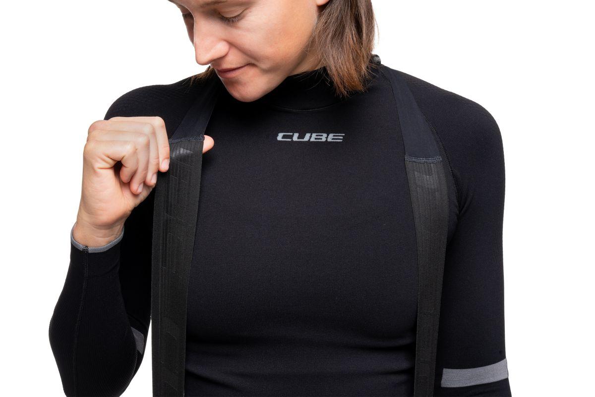 Vorgeformte, ergonomische Passform für Komfort auf langen Fahrten, geruchshemmende Ausrüstung, atmungsaktives, komprimierendes und elastisches Material, elastische und weiche Trägerkonstruktion, Seiten- und Rücktasche, CUBE Team Pad - hergestellt in Italien, Model ist 168 cm groß, Model trägt Größe S