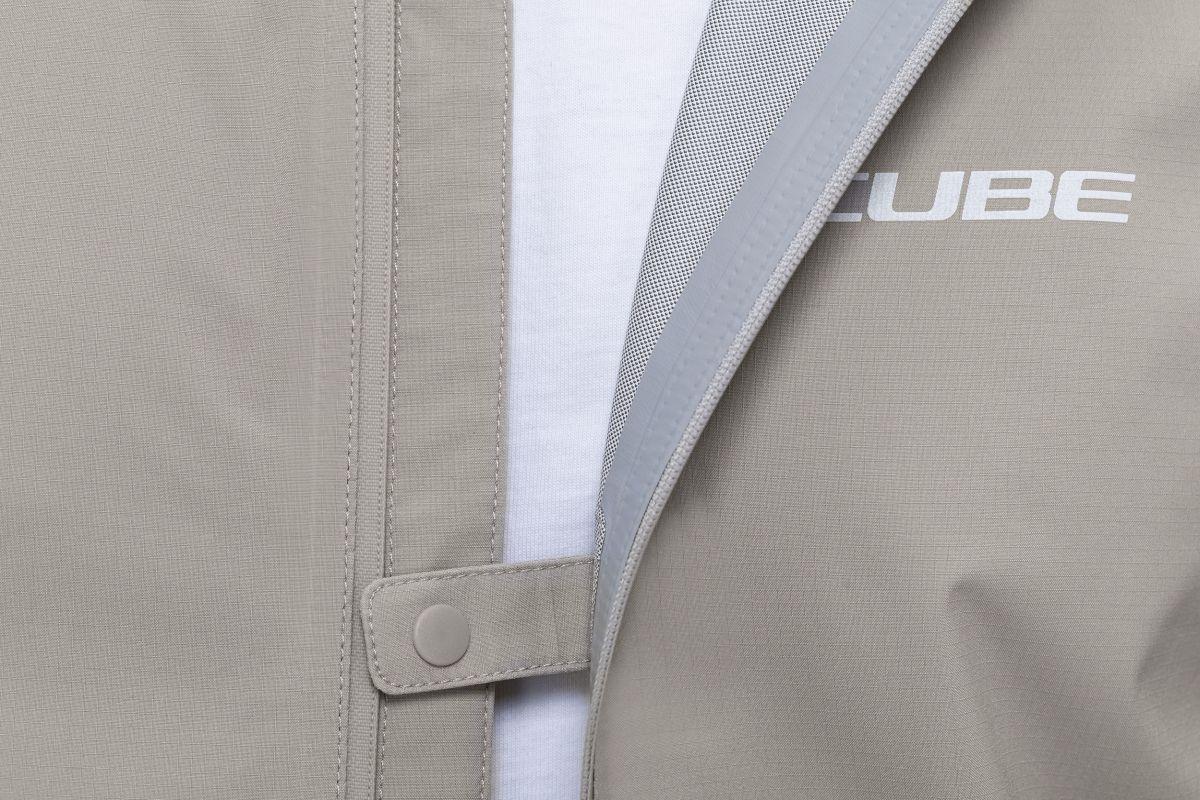 Die leichte CUBE MTB Storm Jacket für Frauen hat ein Update bekommen und ist ein Allrounder-Teil für Mountainbikerinnen und Multisportlerinnen. Das wasser- und winddichte Funktionsmaterial hat eine noch höhere Wassersäule als bisher und schützt damit noch länger und besser effektiv vor Regen. Der Stoff ist atmungsaktiv, soft und elastisch – für eine derart hohe Wasserdichte trägt sich die Jacke superkomfortabel. Die Nähte sind getapt, auch der Frontreißverschluss ist wasserdicht. Sowohl die Kapuze mit zusätzlichem Schirm als auch der Saum unten lassen sich über ein Tunnelzug-Gummiband enger ziehen und so wirklich alle Luken dichtmachen. Zudem ist sie leicht und lässt sich klein zusammen- und in der eigenen Seitentasche oder Kapuze verpacken.
