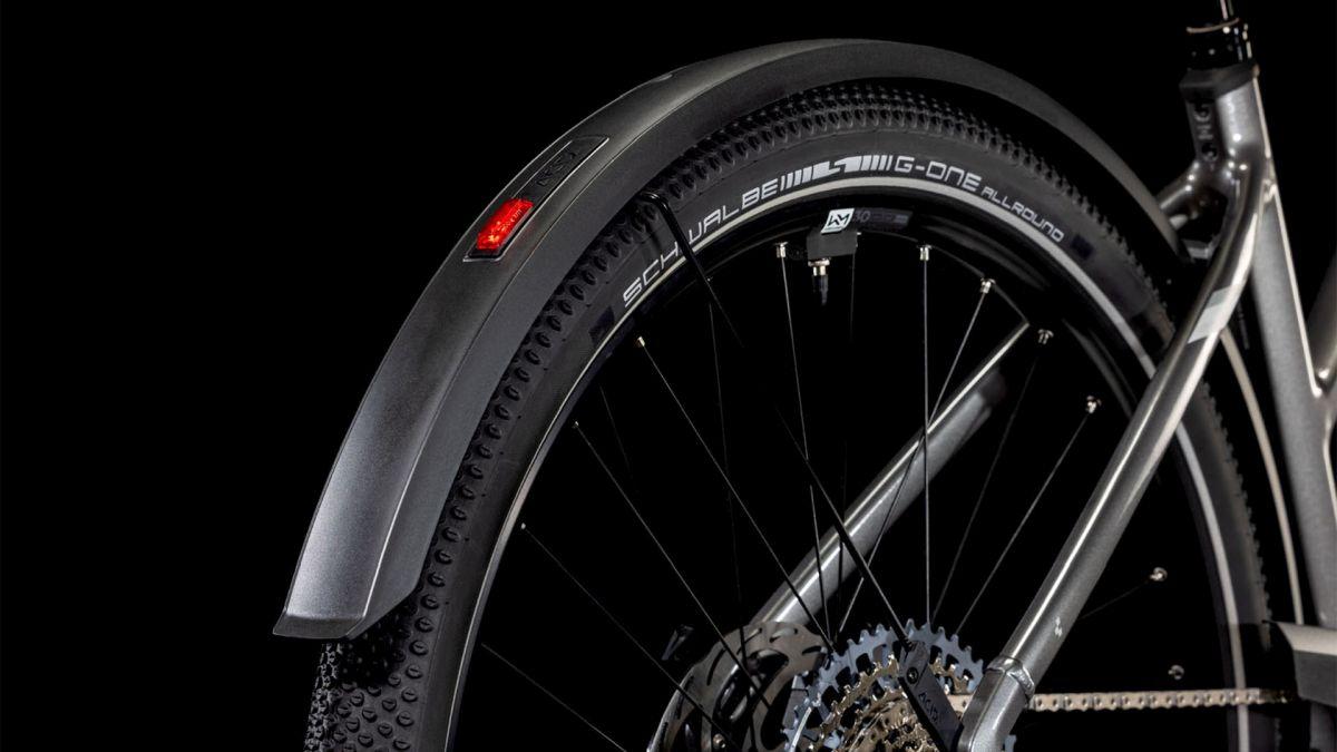 Auf den ersten Blick sieht der Nuride Hybrid Trapezrahmen vielleicht unspektakulär aus, doch wer genau schaut, wird von seiner subtilen Eleganz und seinen innovativen Details begeistert sein. Neben einer Federgabel mit 100 mm Federweg für ein Plus an Fahrkomfort und Kontrolle haben wir das Chassis mit großzügiger Reifenfreiheit (sogar inklusive der mitgelieferten Schutzbleche) ausgestattet. Im Inneren verlaufende Züge unterstreichen die cleane Optik des Rahmens und verursachen kaum Wartungsaufwand. Ebenso harmonisch ins Design integriert sind der Bosch CX Antrieb und der 800 Wh starke PowerTube Akku. Außerdem gibt's einen Kettenschutz sowie ein UDH für einfachere Ersatzteilverfügbarkeit. Was noch? Serienmäßig verbaute Schutzbleche, Lichter und ein Seitenständer. Da kann das nächste Touren-Abenteuer kommen!