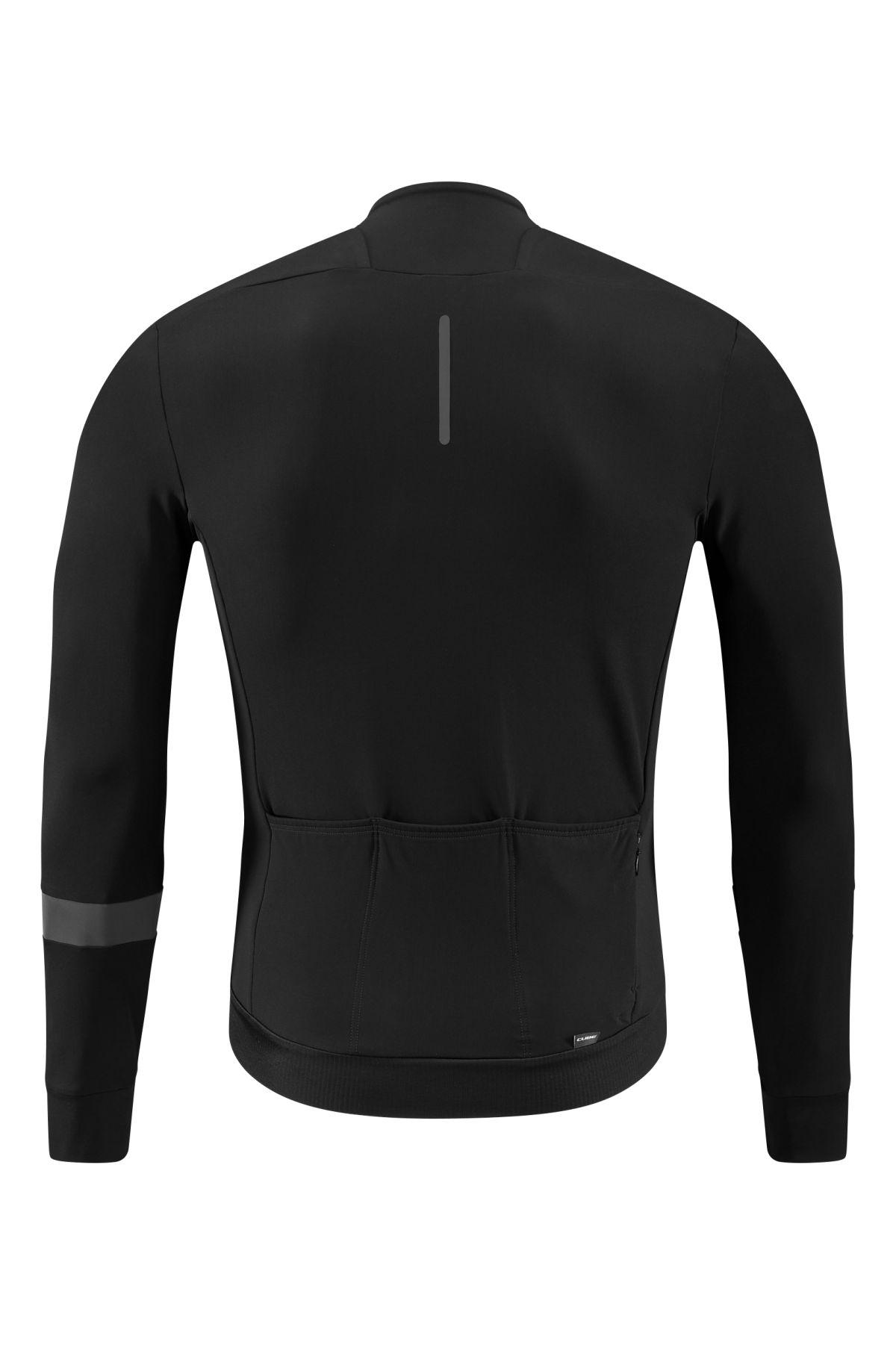 enganliegend, weicher Innensaum mit breitem Silikonband, durchgehender Frontreißverschluss, 3-teilige Rückentasche, wasserabweisende Reißverschlusstasche hinten, schnelltrocknendes, wärmendes Funktionsmaterial, nahtfreier Schulterbereich, reflektierende Elemente, Model ist 190 cm groß, Model trägt Größe L