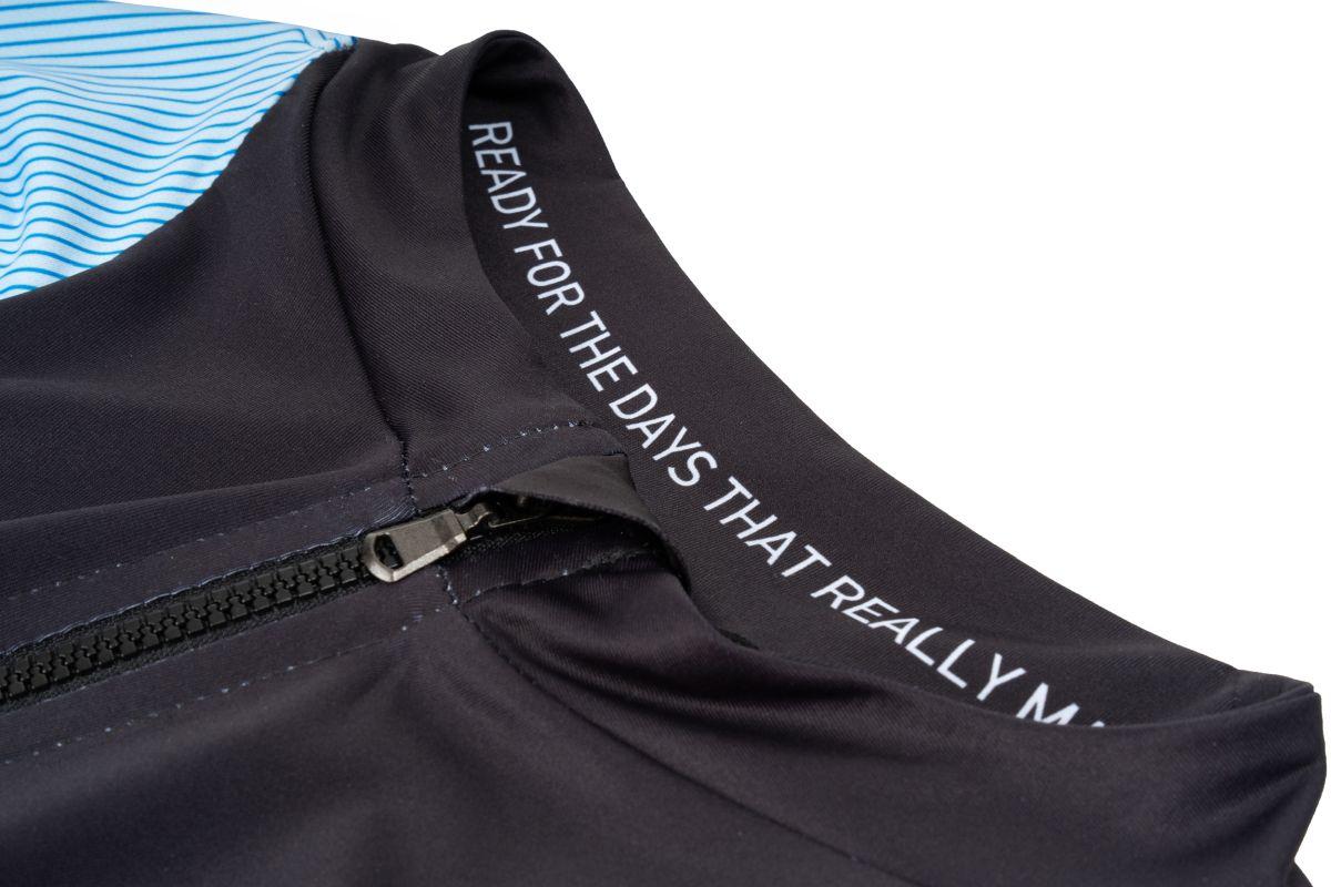 Das CUBE Road/XC Kurzarmtrikot verbindet sportlichen Schnitt mit cleveren Details. Der athletische Sitz bietet im Schulterbereich viel Bewegungsfreiheit und sorgt für ein natürliches Tragegefühl auf dem Bike. Der durchgehende Frontreißverschluss macht das An- und Ausziehen besonders einfach. Ein silikonbedruckter Saum und der vorgeformte Kragen halten das Trikot sicher an Ort und Stelle und schützen zuverlässig vor Zugluft. In der dreiteiligen Rückentasche finden Verpflegung und Tools Platz, während eine seitlich versteckte, wasserdichte Zipper-Tasche Wertsachen wie Smartphone oder Geld sicher verwahrt.