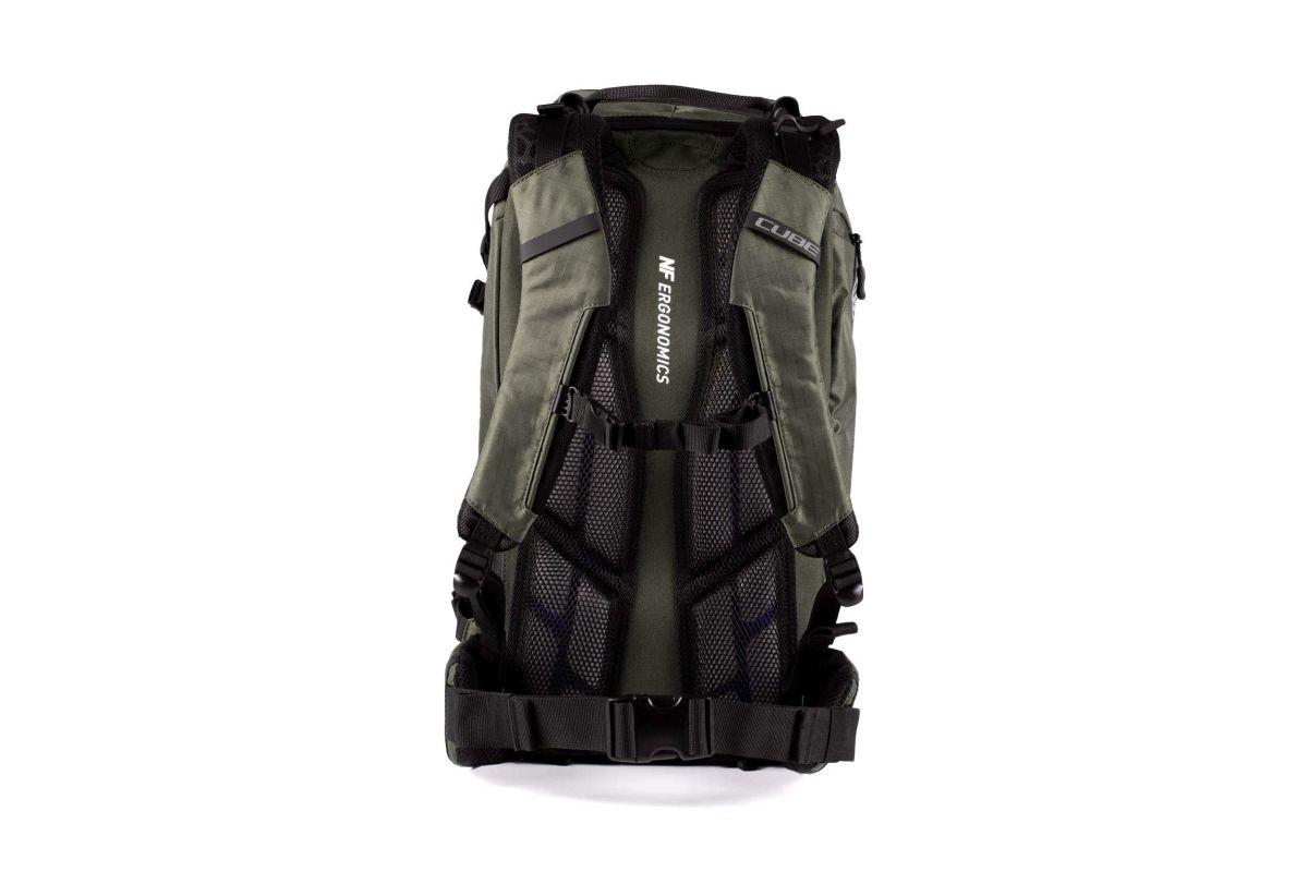 Der CUBE ATX 22 bietet Platz für alles, was auf ausgedehnten Touren mitmuss. Dank dem von CUBE entwickelten NF Ergonomics Rückensystem und gepolsterten Hüftgurt sitzt der Rucksack optimal am Rücken. Das Gewicht wird angenehm verteilt, der Rücken ist gut gepolstert und belüftet. Über das MOLLE-System lässt sich der Rucksack flexibel erweitern und an jede Mission anpassen. Mit den seitlich angebrachten Kompressionsriemen hast du zusätzlich die Möglichkeit, deine Jacke oder Protektoren zu befestigen. Dank sinnvoller Fächeraufteilung, extra Werkzeugfach und Smartphone-Seitenfach sind die wichtigsten Gegenstände schnell griffbereit. Regen oder Sonne – dank Raincover und Trinkblasenfach bringt dich der Rucksack zuverlässig ans Ziel.