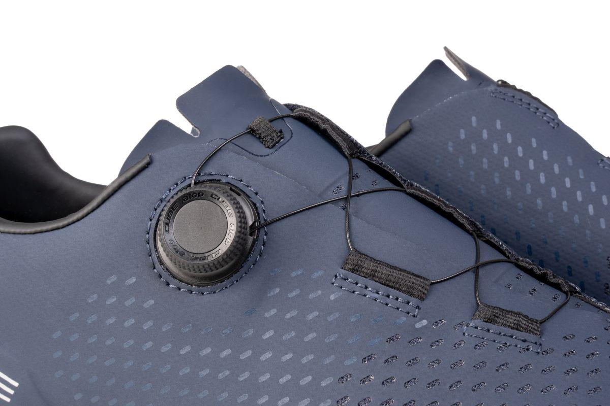 Der CUBE SYDRIX Schuh vereint hervorragende Belüftung mit sicherem Verschluss und bietet Rennradfahrern sowohl Komfort als auch effiziente Kraftübertragung. Die Glasfasersohle mit Belüftungskanälen und austauschbarem Fersenstollen garantiert, dass jede Watt Leistung direkt auf die Pedale übertragen wird, während die verstärkte Fersenkappe Stabilität und Halt verbessert. Der Disc-Verschluss ist schnell und einfach zu bedienen und verteilt in Kombination mit einem asymmetrischen Design den Druck gleichmäßig für optimalen Komfort und Passform. Die verstärkte Zehenbox bietet zusätzlichen Schutz in diesem empfindlichen Bereich. Das perforierte Obermaterial und die NF Ergonomics-Innensohle sorgen für gute Belüftung, Polsterung und Druckverteilung, was den ganzen Tag über Fahrkomfort gewährleistet.