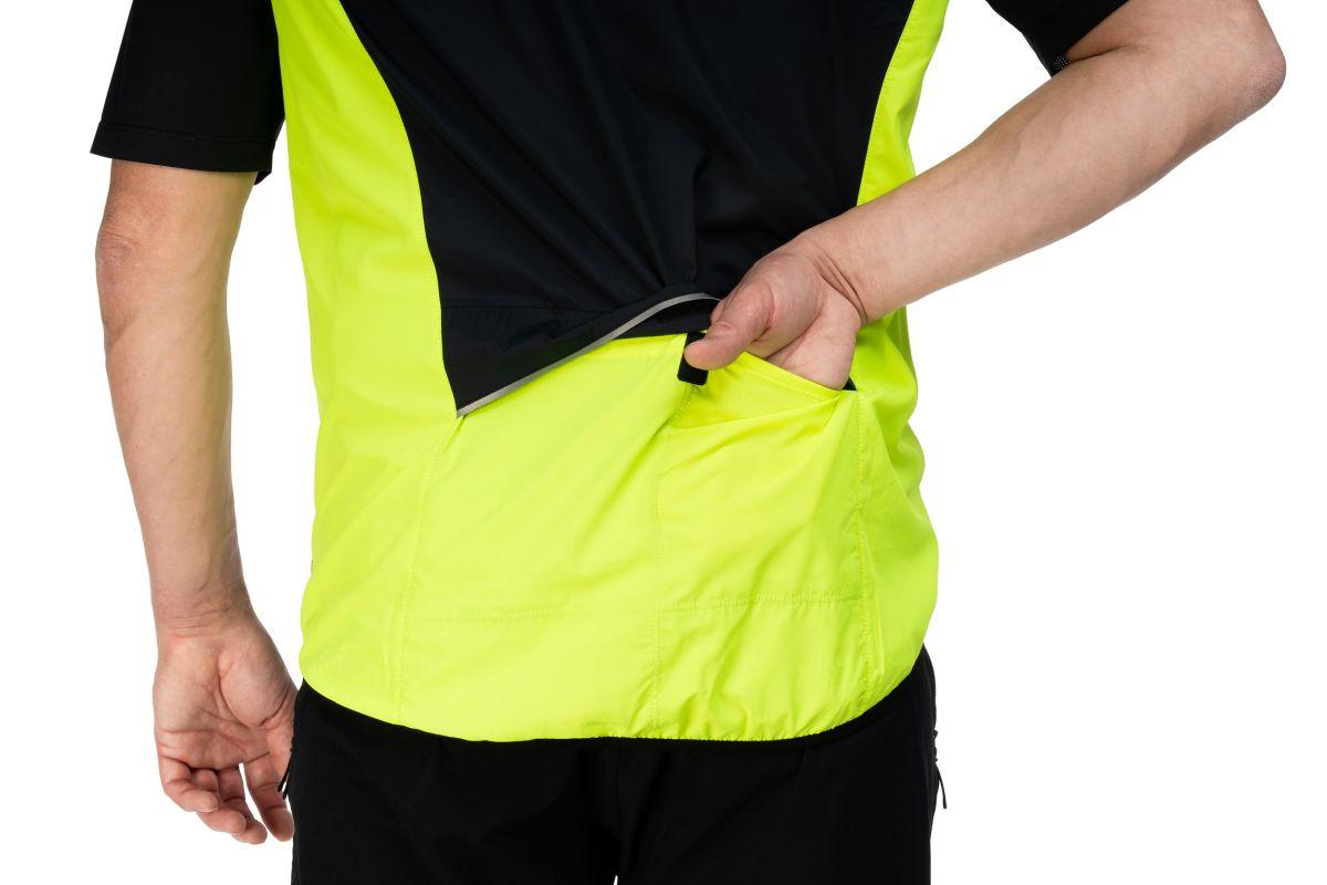 enganliegender Kragen für extra Windschutz, winddicht und wasserabweisend, geringes Packmaß, in sich selbst verstaubar, reflektierende Elemente, elastischer Saum, Model ist 178 cm groß und trägt Größe M